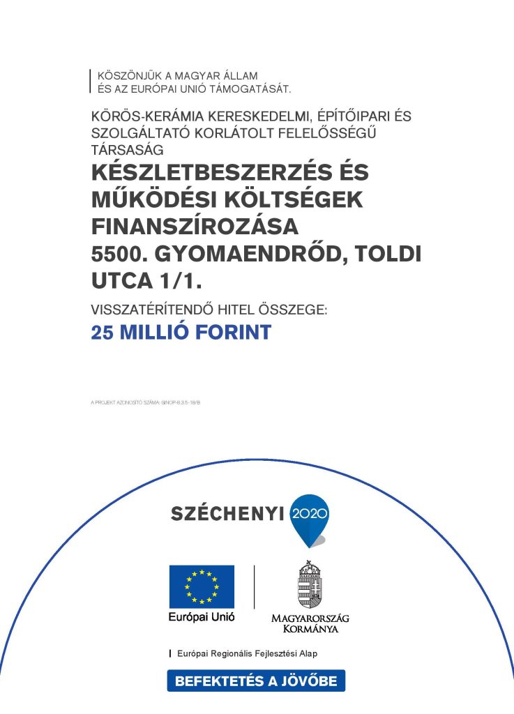 - Kedvezményezett neve: KÖRÖS-KERÁMIA Kereskedelmi, Építőipari és Szolgáltató Korlátolt Felelősségű Társaság